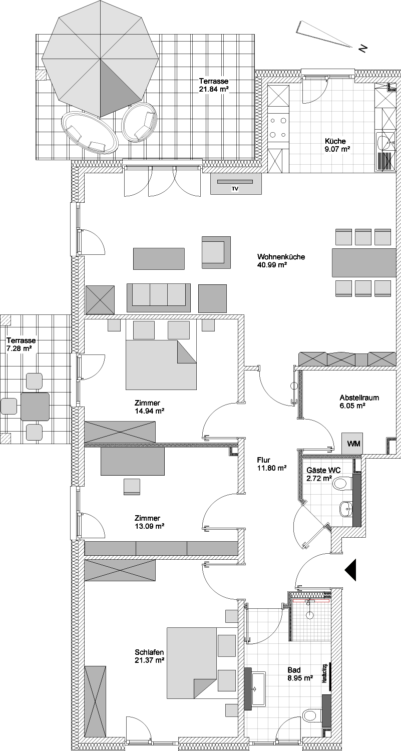 Terrasse 2 | 21.84 m² / 2= 10,92 m² |