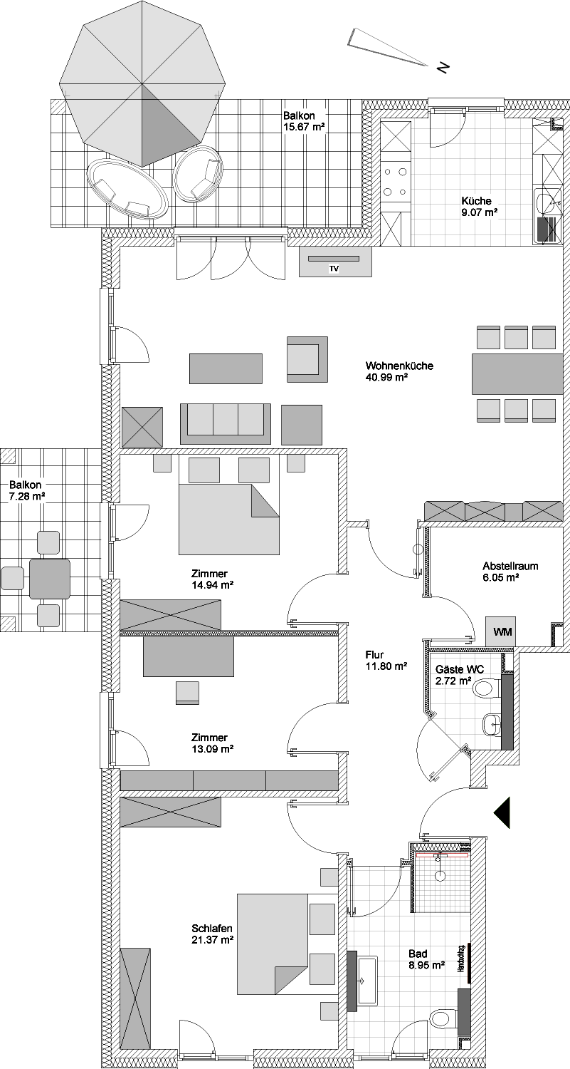 Balkon 2 15,67 m² / 2= 7,84 m²