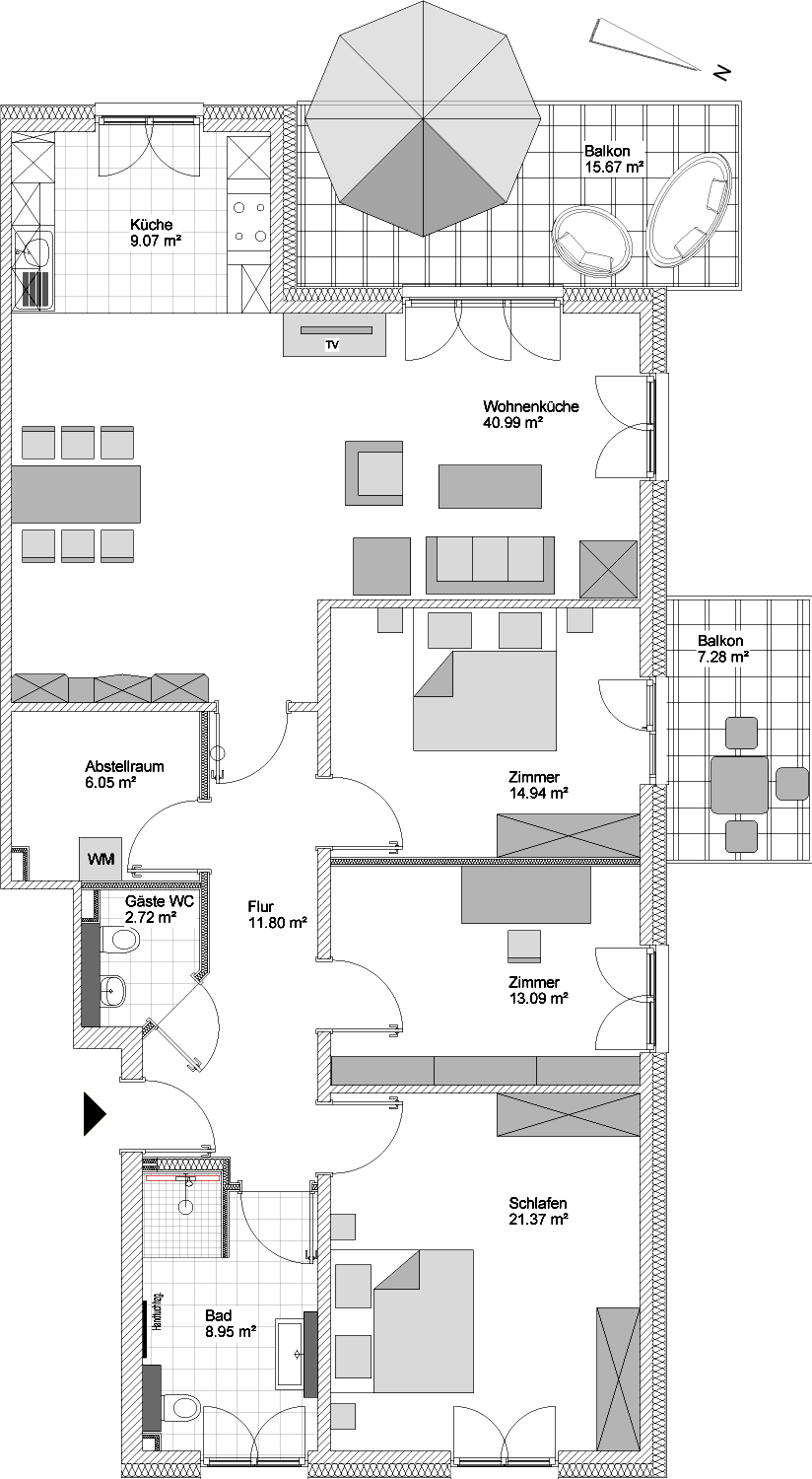 Balkon 2 | 15,67 m² / 2= 7,84 m² |
