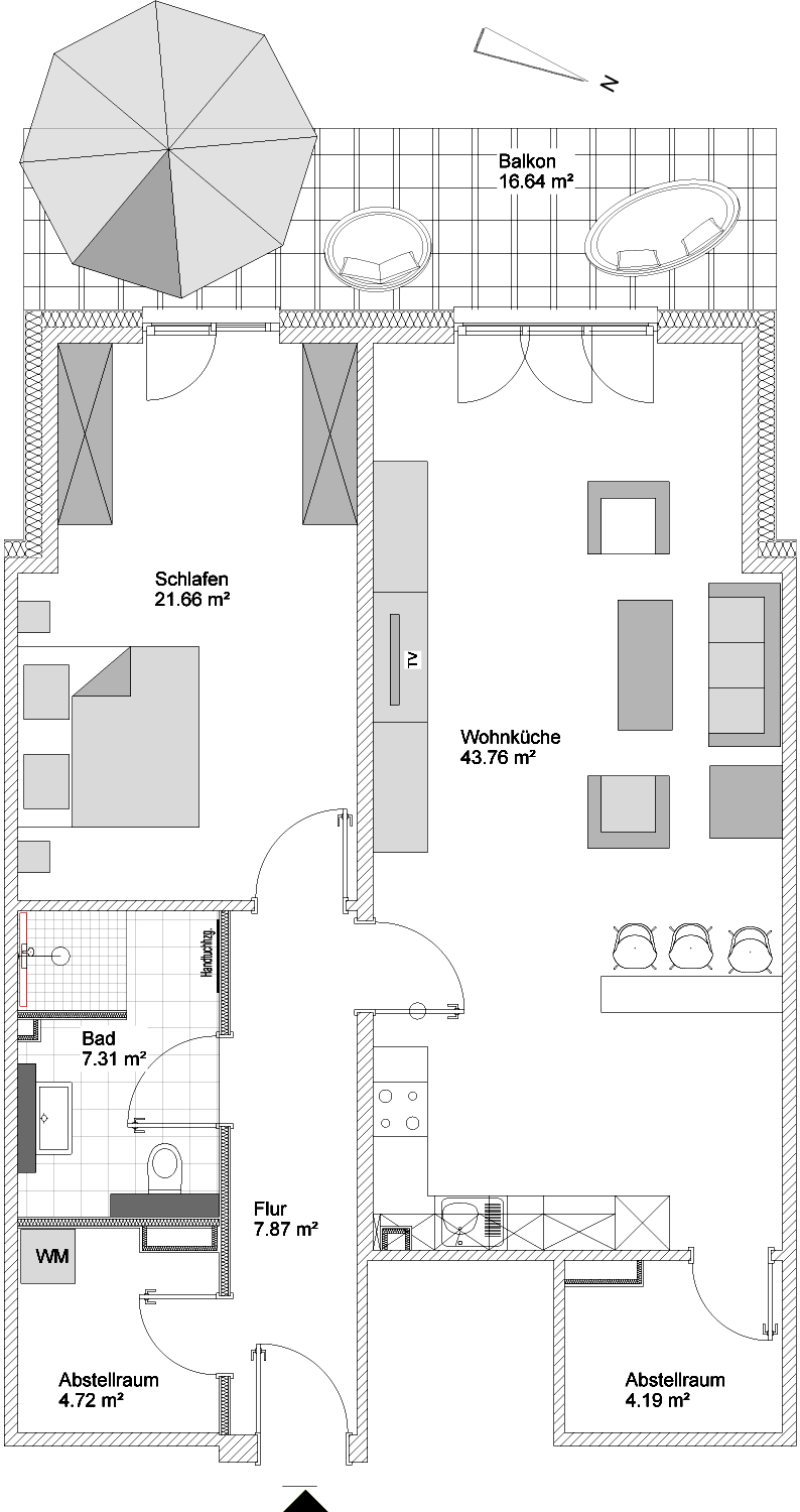 Balkon | 16,64 m² / 2= 8,32 m² |