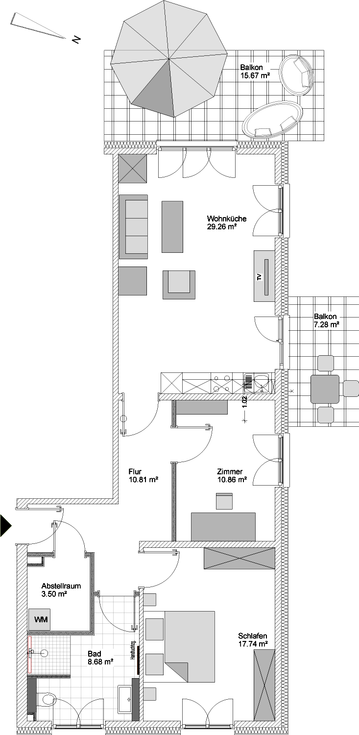 Balkon 2 | 15,67 m² / 2= 7,84 m² |
